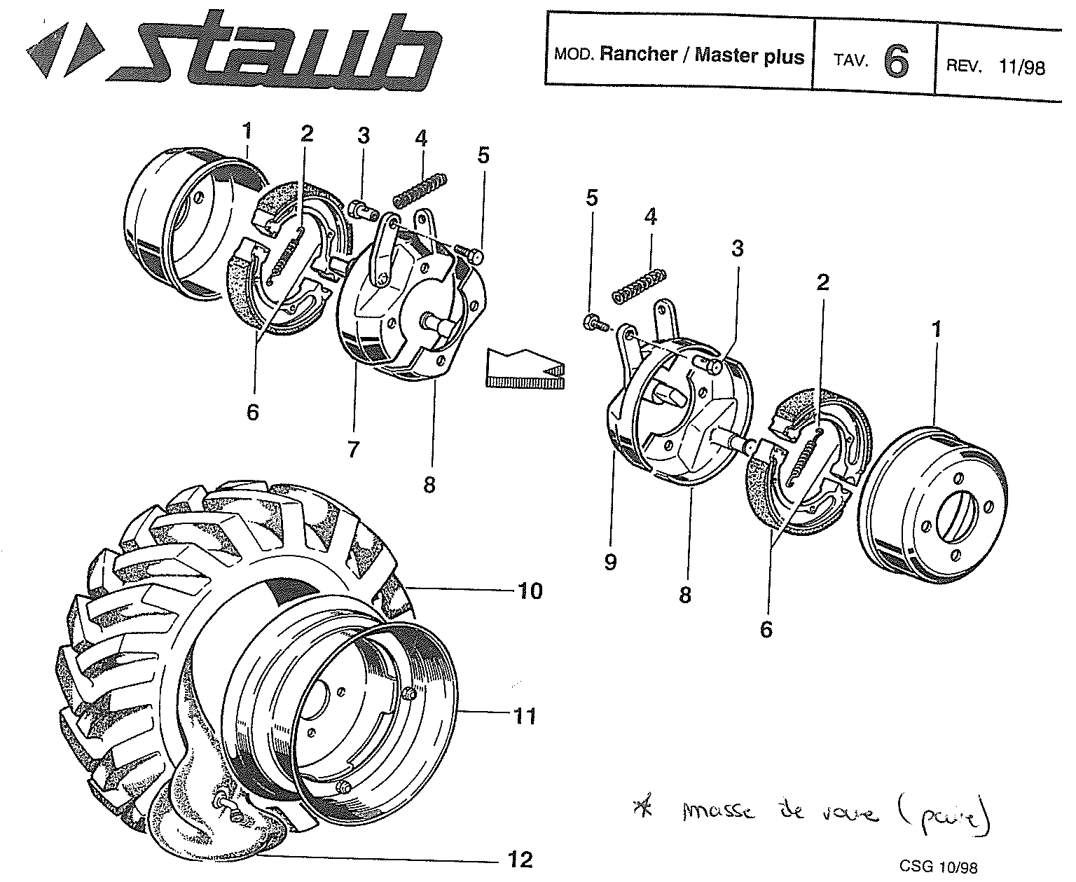 Jeu de Mâchoires de Frein Motoculteur Staub Référence YN2362700 |