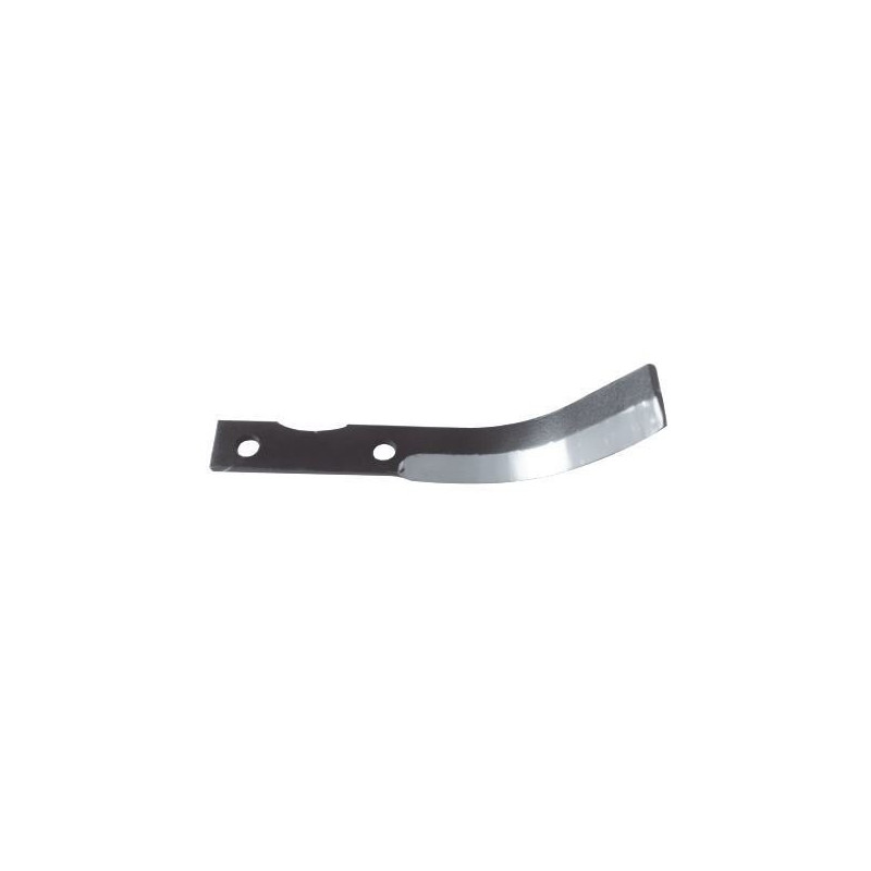 COUTEAU FRAISE GAUCHE B 195 mm Spécial binage. Pour motoculteurs et motobineuses Grillo. Longueur : 195 mm. Section 54 x 3 mm. Hauteur : 60 mm. Trou central : 8,5 mm. Acier trempé. Affûtage à la meule sous arrosage. Fabrication française.