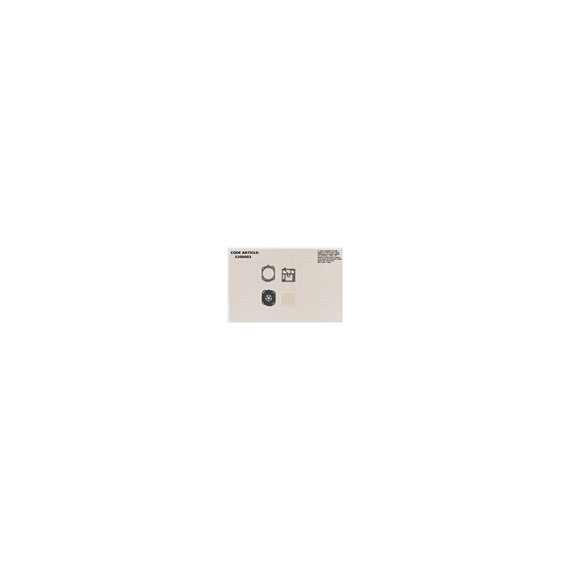 Kit membranes et joints carburateur adaptable ECHO modèles CS453, CS500, CS601, CS610, CS5000 - EMAK modèles 2051 - HOMELITE modèles 4100 - HUSQVARNA modèles 238, 242, 250, 254, 340, 345, 350, 351, 435, 535, 950 - POULAN modèle 3600 - SHINDAIWA modèle 350. Remplace origine 123101-17330.