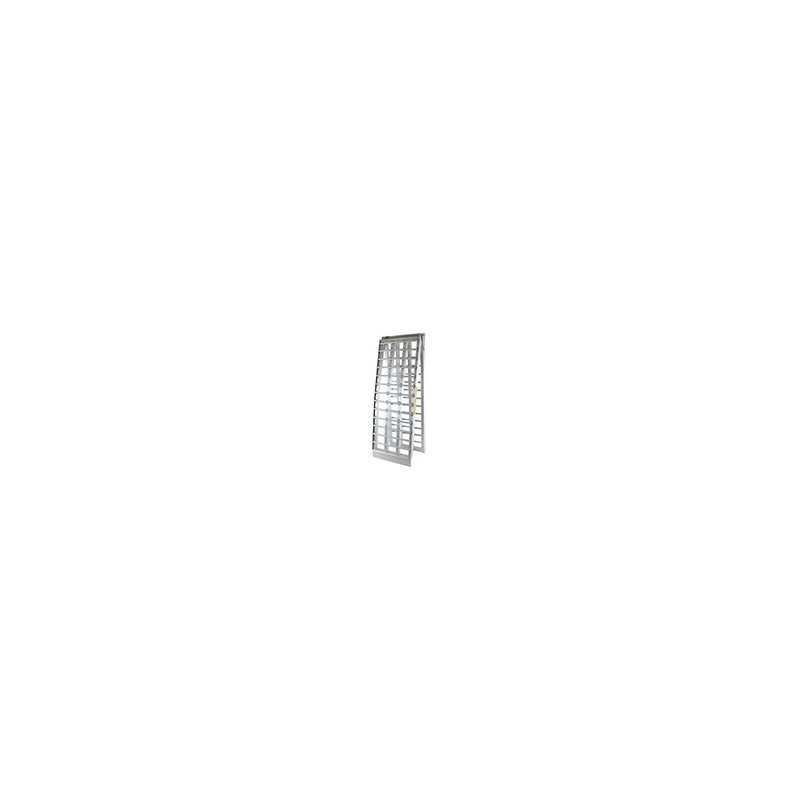 Rampe courbée pliable en alu L 244 cm l: 43 cm, L pliée 126 cm, profil antidérapant d'une capacité maximum de 650kg/pièce. VENDU PAR PIECE.